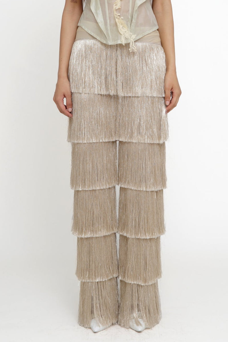 Kim Shui Logo - Beige Mesh Crop Stretch Tee